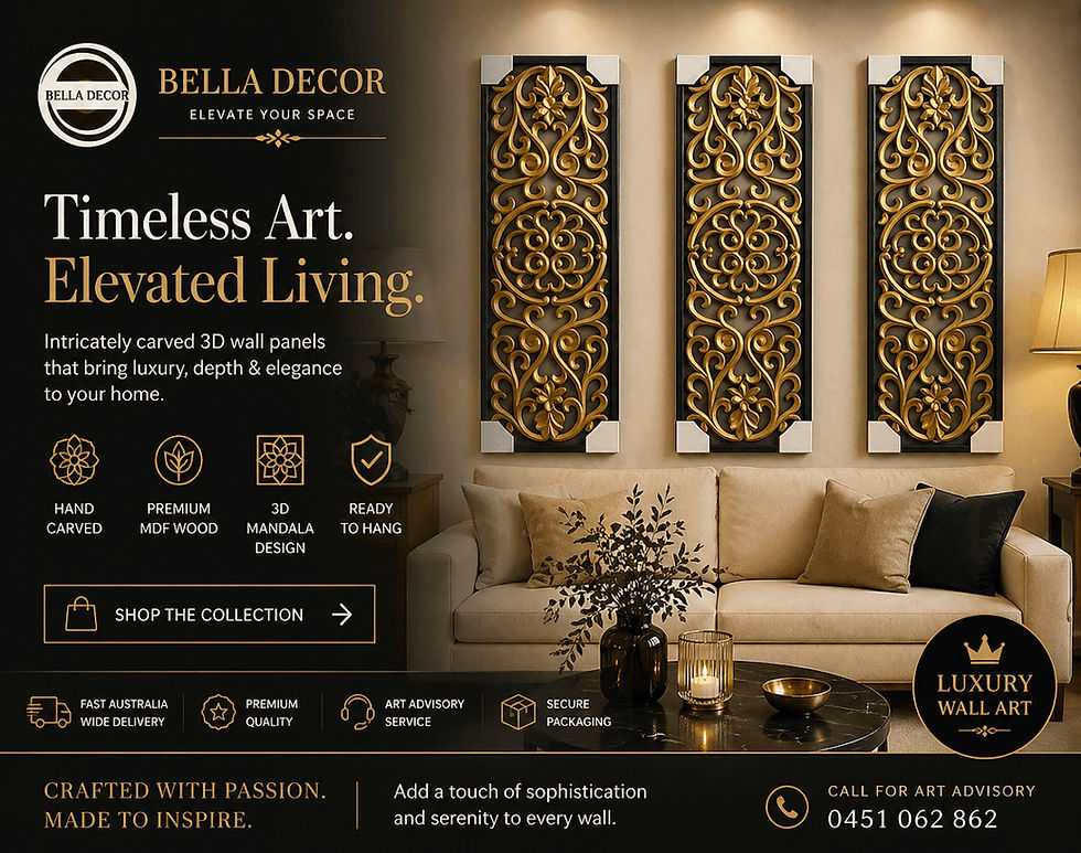 Elevate your interiors with Bella Decor’s premium carved wall panels, designed as stunning 3D symmetrical wall sculptures that bring depth, texture, and refined elegance to any space. Each piece is ornately hand-carved from high-quality MDF wood, available in natural finishes or expertly painted designs to suit modern and classic interiors.